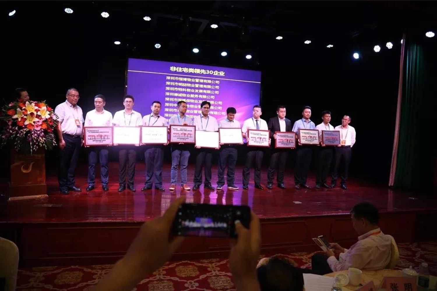 会议还对获得2017年度物业管理业主满意度深圳指数(抽样单位)“领先30”的企业进行了表彰授牌。恒博物业等30家企业获得非住宅类项目业主满意度“领先30”荣誉,恒博物业排名首位。