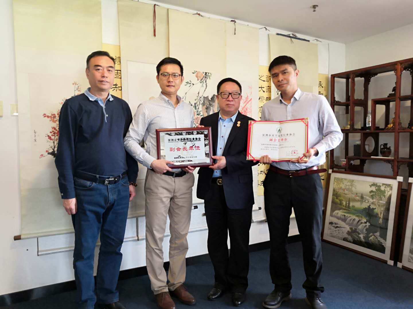 2019年42日,深圳市安全防范行业协会(下称:深圳市安防协会)于福田中心的英龙大厦举办深圳市安防科技单位授牌仪式。深圳市安防协会会长杨金才亲自颁发资质牌匾,授予深圳市恒博国际旗下企业——深圳市恒博智能安防机器人有限公司为“深圳市安防行业协会副会长单位”。恒博安防科技事业版块总经理陈立国于授牌仪式现场,代表公司接受这份荣誉。