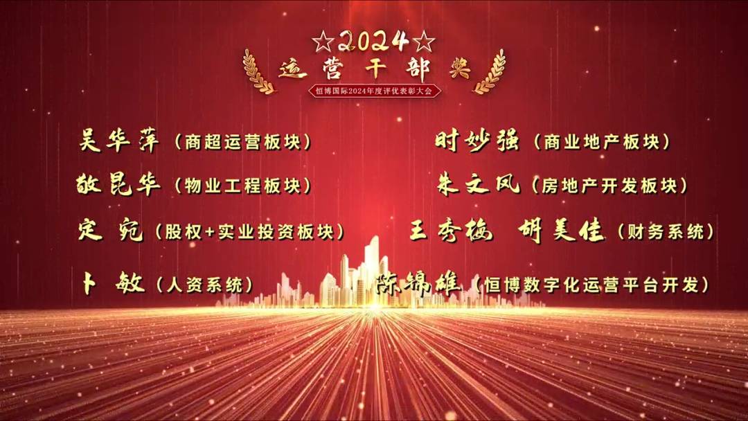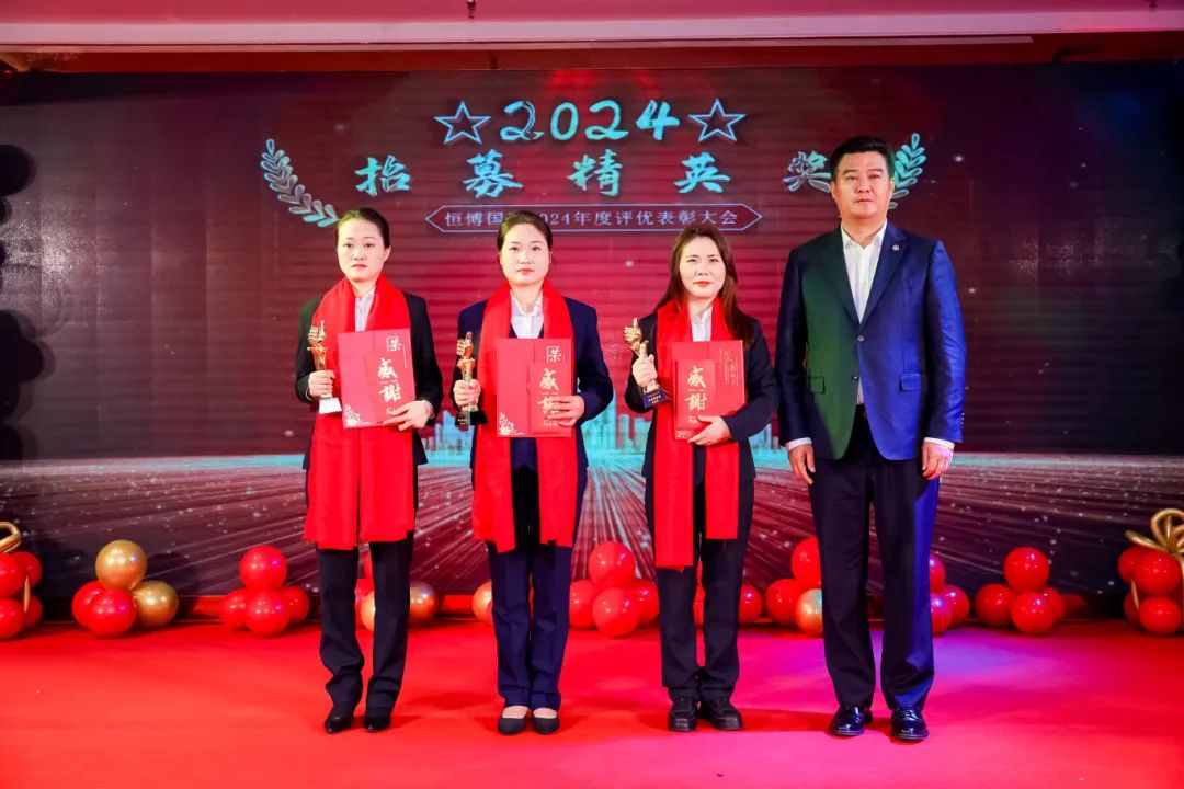 首先,恒博国际人力资源部总监习文宣读了《恒博国际2024年度优秀团队及绩优个人奖项通报》。恒博始终坚持市场导向与客户导向,以“共享资源、共享品牌、共享利润”为宗旨,将市场拓展置于战略优先,通过表彰先进典型,进一步发挥榜样引领的作用。经集团研究决定,对市场引领——开疆辟土类、运营管理——固本强基类两类奖项共38个获奖团队和员工进行表彰。随后,大会进入颁奖环节!
